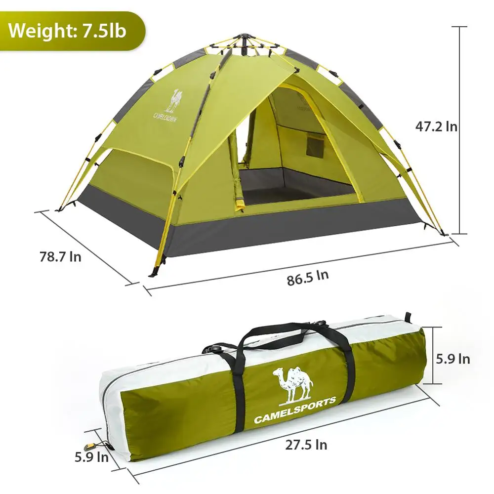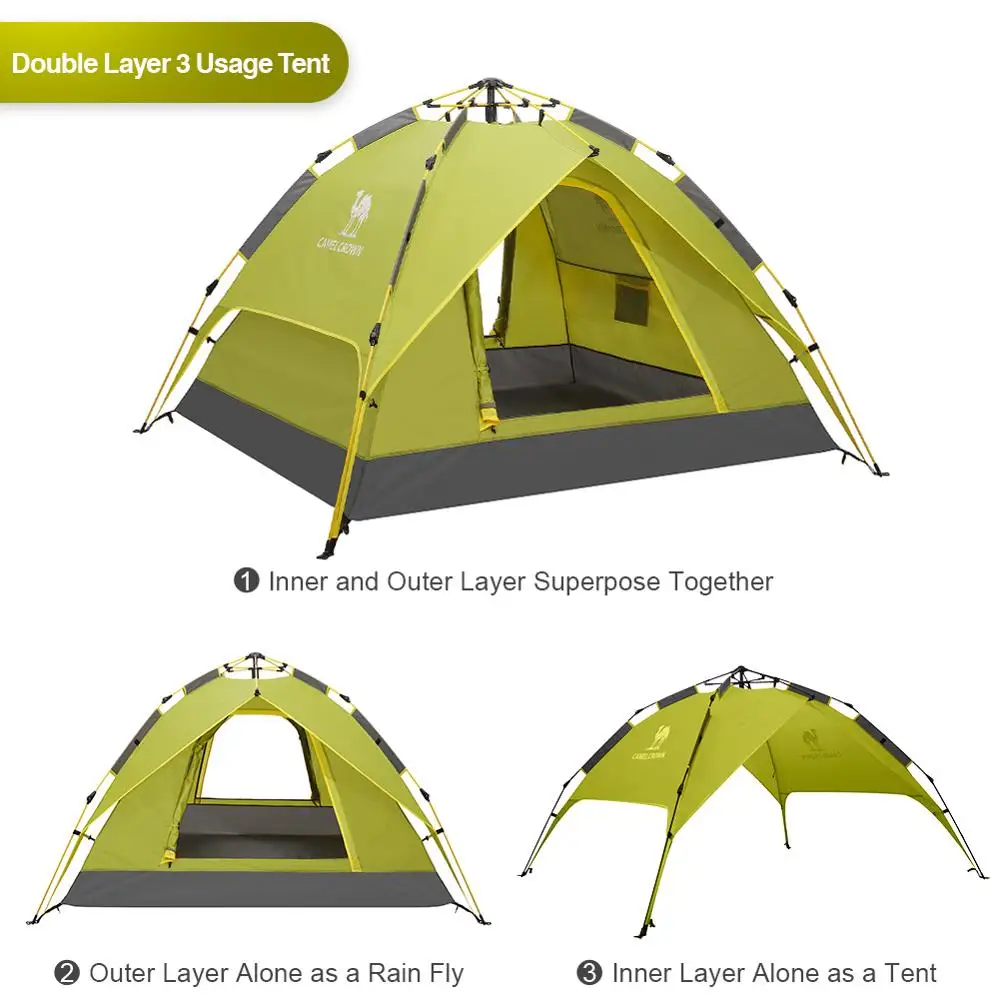 HIGH QUALITY CAMEL 3-4 People Double Layer Spring-loaded Automatic Tent Outdoor Camping Hiking Travel Tent Water