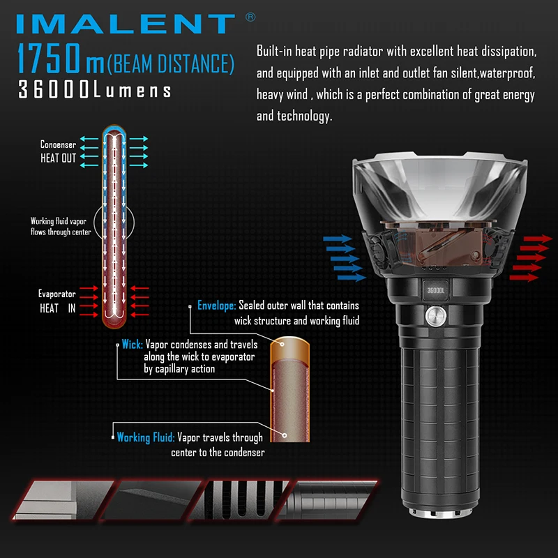HIGH QUALITY Imalent R90TS LED Flashlight 36000LM CREE XHP35 HI Rechargeable High Power Flashlight with 21700 Ba