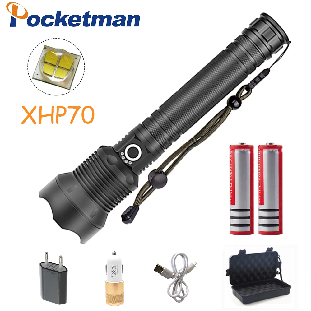 XHP70 Flashlight Rechargeable Flashlight 7000LM Tactical Torch defense flashligh zoom lamp For Camp
