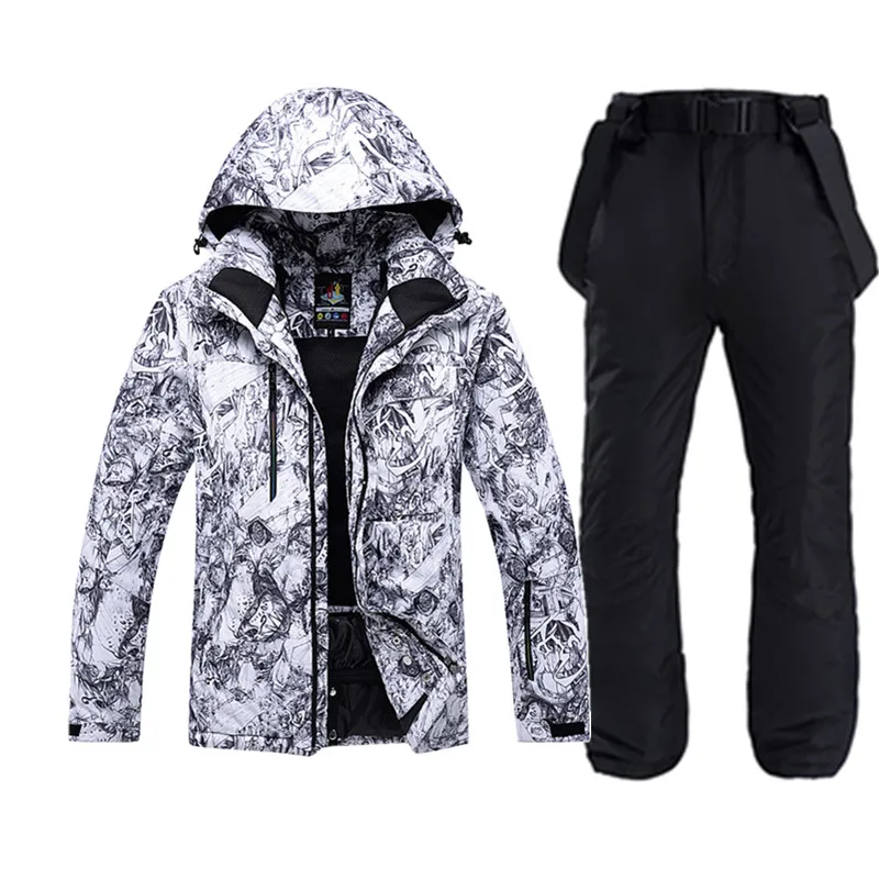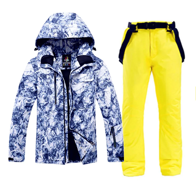 TOP Winter Thick Warm For Men Ski Jacket+Pants Waterproof Snowboard set Windproof Hiking -30 Degrees Sn
