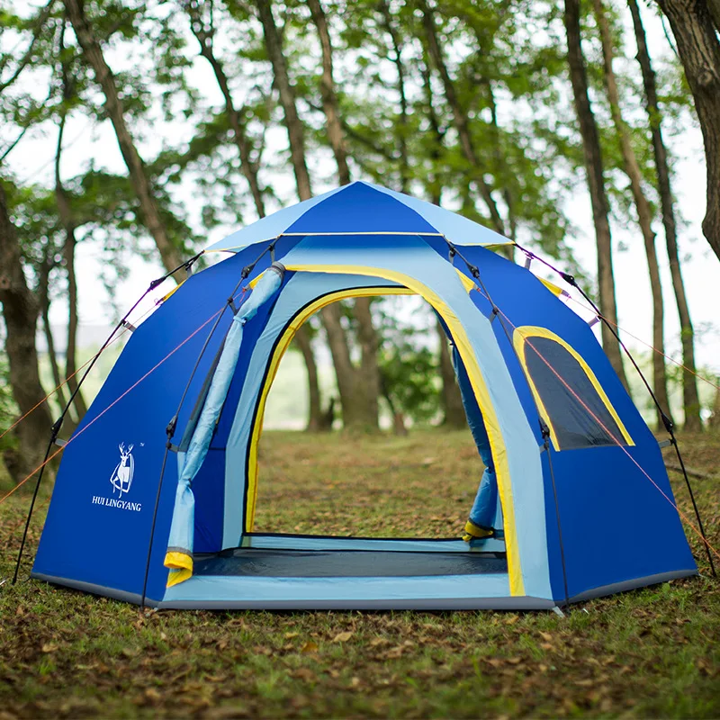 ORIGINAL Outdoor camping hiking waterproof tent Hexagonal 3-4 person large capacity tents Automatic quick op
